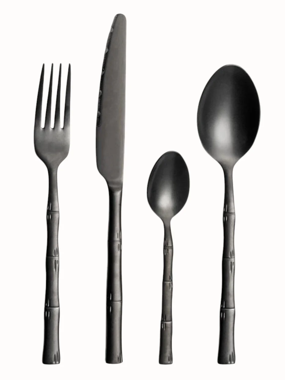 Flatware Collection Quick View Matte Black Flatware Quick View Silver Flatware Quick View Bamboo Flatware Quick View White Resin Flatware Quick View Wooden Steak Knife Quick View Gold Flatware
